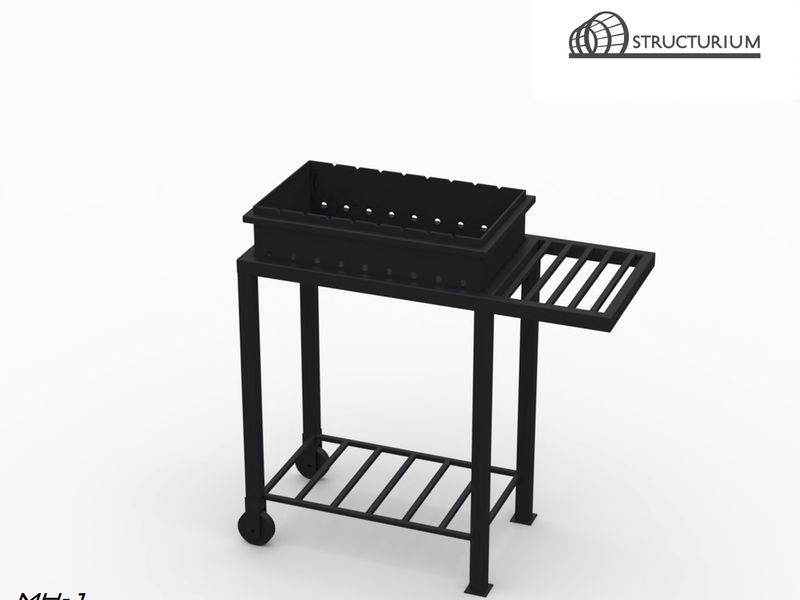 При производстве мобильного Мангала используется профильная труба 40*40*2мм, 40*25*2мм, 20*20*2мм и 15*15*2мм, а также лист 3мм. Покраска термостойкой краской, цвет черный.