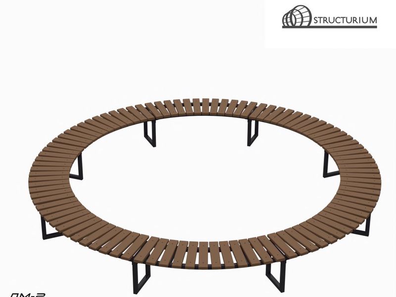При производстве круглой скамьи для обустройства костровой зоны используется профильная труба 40*25*2мм. Материал сидения скамейки – доска 90*30мм обработанная атмосферостойким негорючим покрытием. Покраска полимерная порошковая с предварительным нанесением цинкосодержащего грунта, цвет может быть любым.